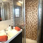 Die Unterkunft verfügt über ein Badezimmer mit einer getrennten Toilette, einer Dusche und einer Waschmaschine. Ein Haartrockner und Badelaken gehören auch zu den Badezimmern.